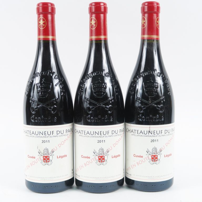 Lot de 3 BOUTEILLES CHATEAUNEUF DU PAPE 'CUVEE LEGATS' J.M. ROYER - 2011 au prix de 45 à 50 € en vente aux enchères par l'hôtel des ventes Primardeco