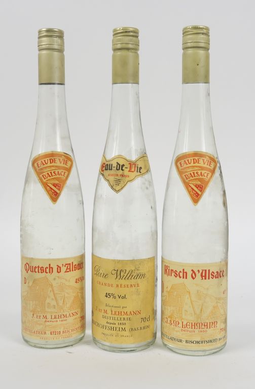 3 BOUTEILLES EAU DE VIE LEHMANN 45° : 1 KIRSCH - 1 QUETSCH - 1 POIRE