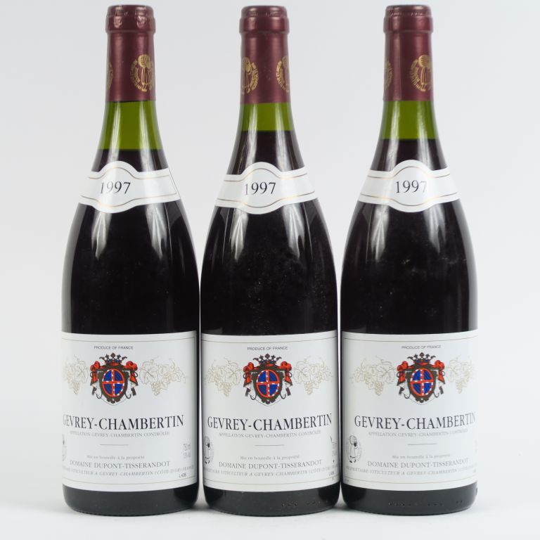 Lot de 3 BOUTEILLES GEVREY CHAMBERTIN DUPONT TISSERANDOT - 1997 au prix de 100 à 110 € en vente aux enchères par l'hôtel des ventes Primardeco