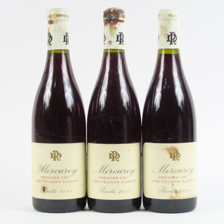 3 BOUTEILLES MERCUREY 1er CRU 'LES CHAMPS MARTIN' MARC ROUGEOT DUPIN - 2001 - 2 ELT/1 CAPSULE SALE
