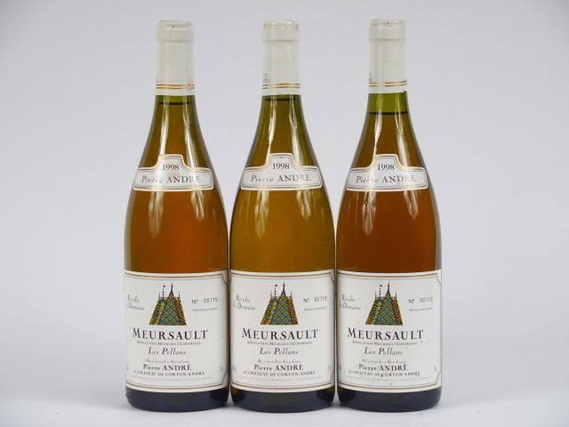 Lot de 3 BOUTEILLES MEURSAULT 'LES PELLANS' P. ANDRE - 1998 au prix de 45 à 50 € en vente aux enchères par l'hôtel des ventes Primardeco