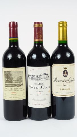 3 BOUTEILLES PAUILLAC : 1 CHÂTEAU PONTET CANET GCC 1998 - 1 CHÂTEAU DUHART MILON GCC 2000 - 1 RESERVE DE LA COMTESSE 2000