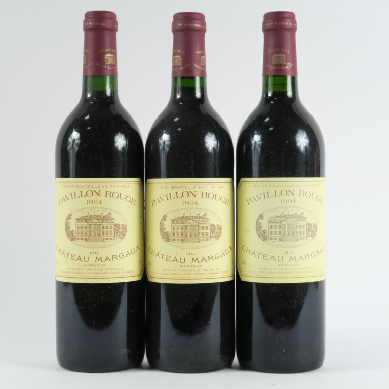 Lot de 3 BOUTEILLES PAVILLON ROUGE DU CHÂTEAU MARGAUX - 1994 au prix de 210 à 230 € en vente aux enchères par l'hôtel des ventes Primardeco