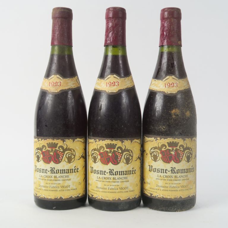 Lot de 3 BOUTEILLES VOSNE ROMANÉE 'LA CROIX BLANCHE' DOMAINE FABRICE VIGOT - au prix de 25 à 35 € en vente aux enchères par l'hôtel des ventes Primardeco