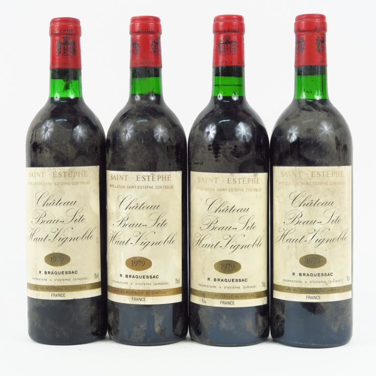 Lot de 4 BOUTEILLES CHÂTEAU BEAU SITE HAUT VIGNOBLE ST ESTEPHE - 1979 - BG au prix de 30 à 40 € en vente aux enchères par l'hôtel des ventes Primardeco