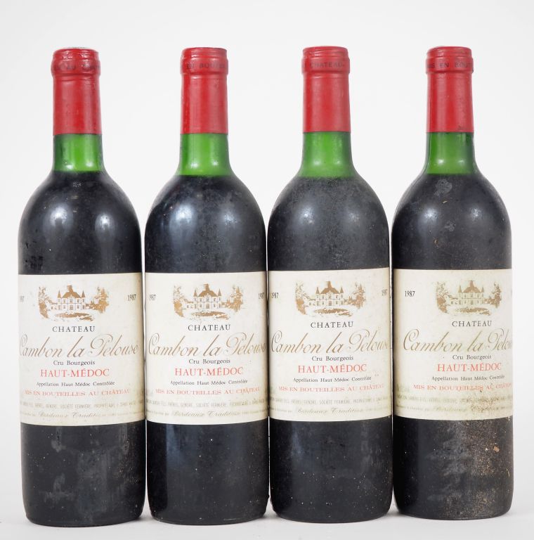 4 BOUTEILLES CHÂTEAU CAMBON LA PELOUSE CB HAUT MÉDOC - 1987 - 1 BG/3 LB/3 ELS/1 ES