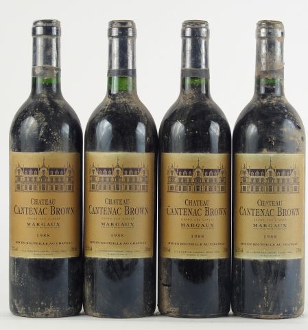 Lot de 4 BOUTEILLES CHÂTEAU CANTENAC BROWN GCC MARGAUX - 1988 - BS au prix de 70 à 80 € en vente aux enchères par l'hôtel des ventes Primardeco
