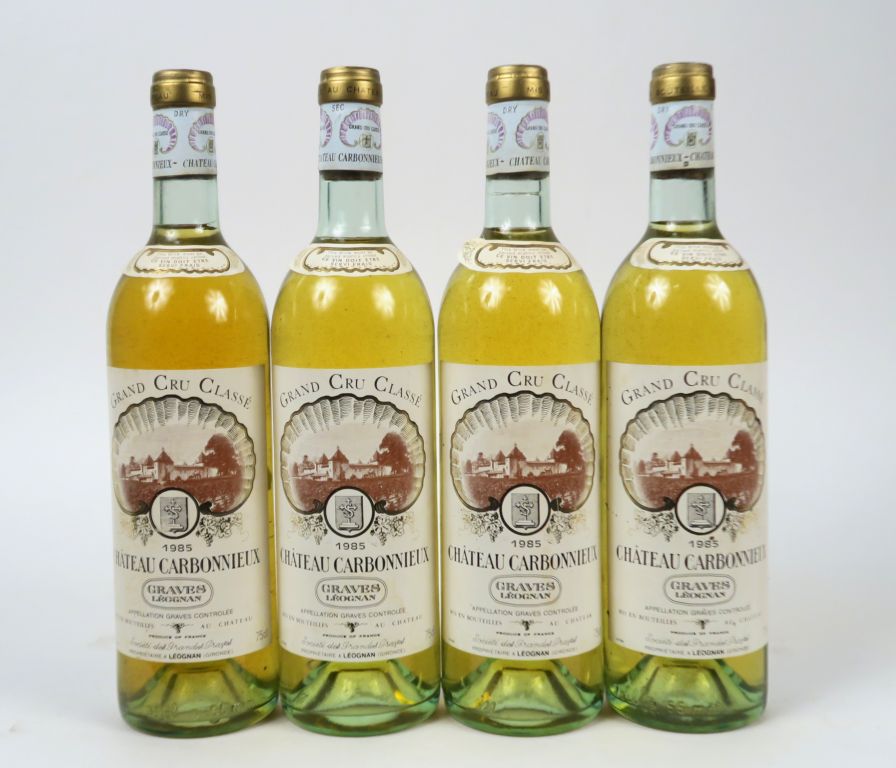 Lot de 4 BOUTEILLES CHÂTEAU CARBONNIEUX GCC GRAVES - 1985 - 2 BG/1LB au prix de 60 à 70 € en vente aux enchères par l'hôtel des ventes Primardeco