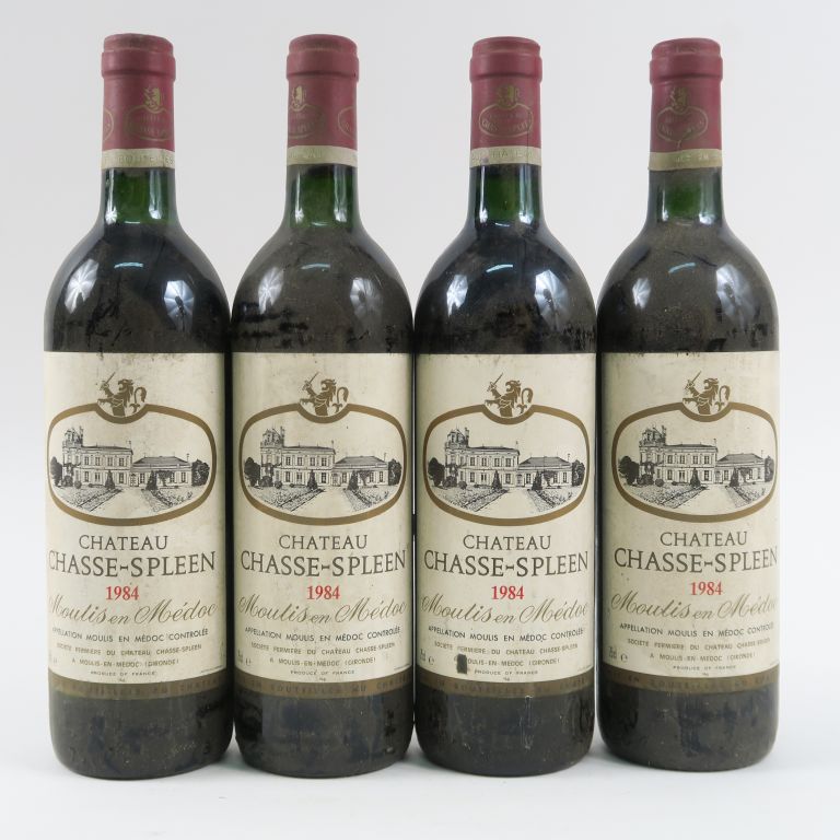 Lot de 4 BOUTEILLES CHÂTEAU CHASSE SPLEEN MOULIS - 1984 - BG au prix de 50 à 60 € en vente aux enchères par l'hôtel des ventes Primardeco
