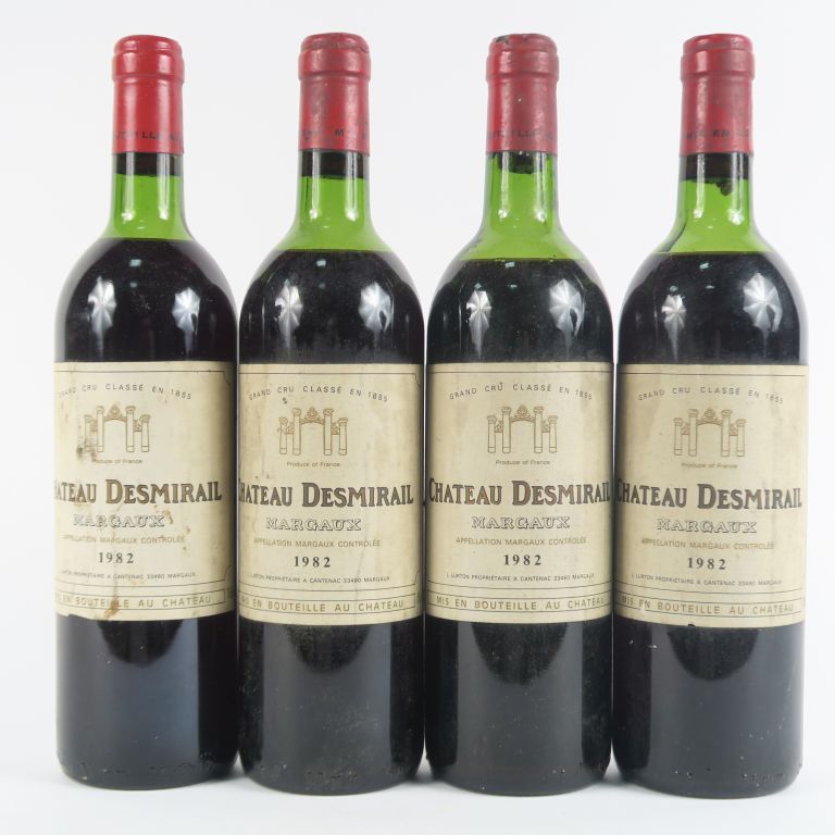 Lot de 4 BOUTEILLES CHÂTEAU DESMIRAIL GCC MARGAUX - 1982 - 1 LB/2 HEP/1 MEP au prix de 20 à 30 € en vente aux enchères par l'hôtel des ventes Primardeco