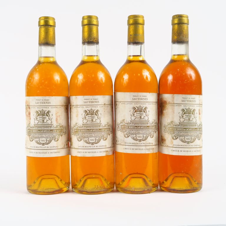 Lot de 4 BOUTEILLES CHÂTEAU FILHOT CC SAUTERNES - 1982 - BG+/ET au prix de 100 à 120 € en vente aux enchères par l'hôtel des ventes Primardeco
