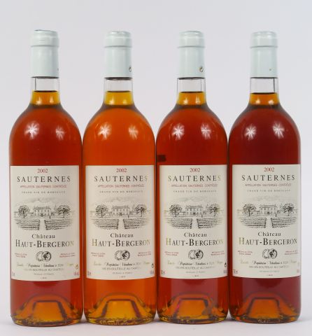 Lot de 4 BOUTEILLES CHÂTEAU HAUT BERGERON SAUTERNES - 2002 au prix de 70 à 80 € en vente aux enchères par l'hôtel des ventes Primardeco