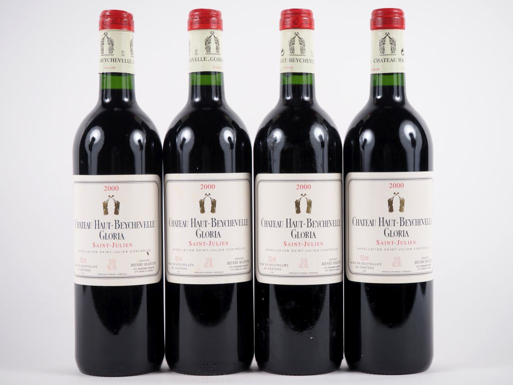 Lot de 4 BOUTEILLES CHÂTEAU HAUT BEYCHEVELLE GLORIA ST JULIEN - 2000 au prix de 60 à 80 € en vente aux enchères par l'hôtel des ventes Primardeco