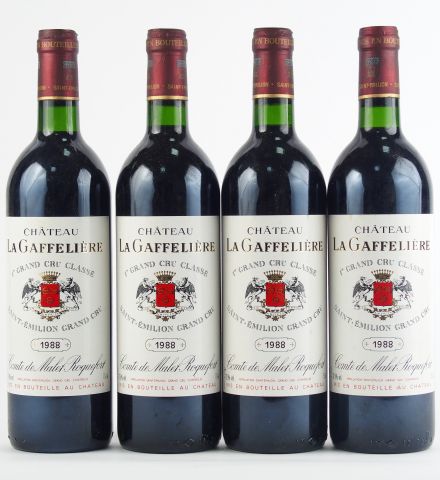 Lot de 4 BOUTEILLES CHÂTEAU LA GAFFELIERE 1er GCC ST EMILION - 1988 - BG+ au prix de 130 à 140 € en vente aux enchères par l'hôtel des ventes Primardeco