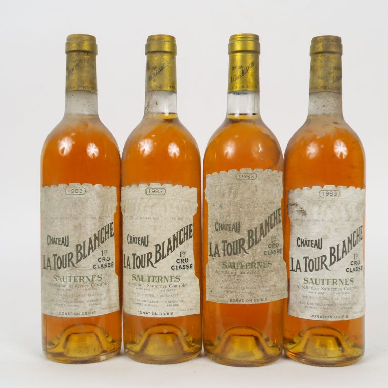 Lot de 4 BOUTEILLES CHÂTEAU LA TOUR BLANCHE 1er CC SAUTERNES - 1983 - ES au prix de 150 à 160 € en vente aux enchères par l'hôtel des ventes Primardeco