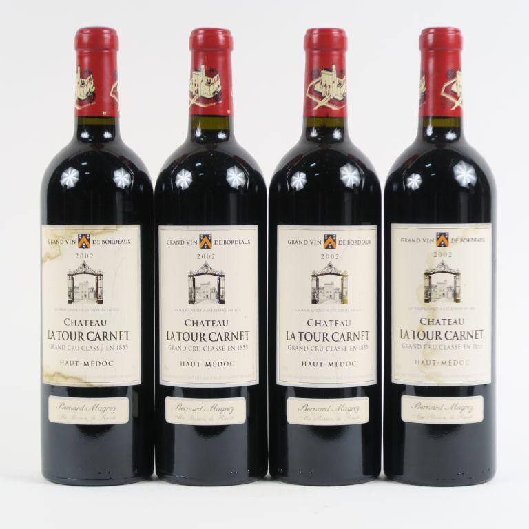 Lot de 4 BOUTEILLES CHÂTEAU LA TOUR CARNET GCC HAUT MEDOC - 2002 - 1 ELT au prix de 70 à 80 € en vente aux enchères par l'hôtel des ventes Primardeco
