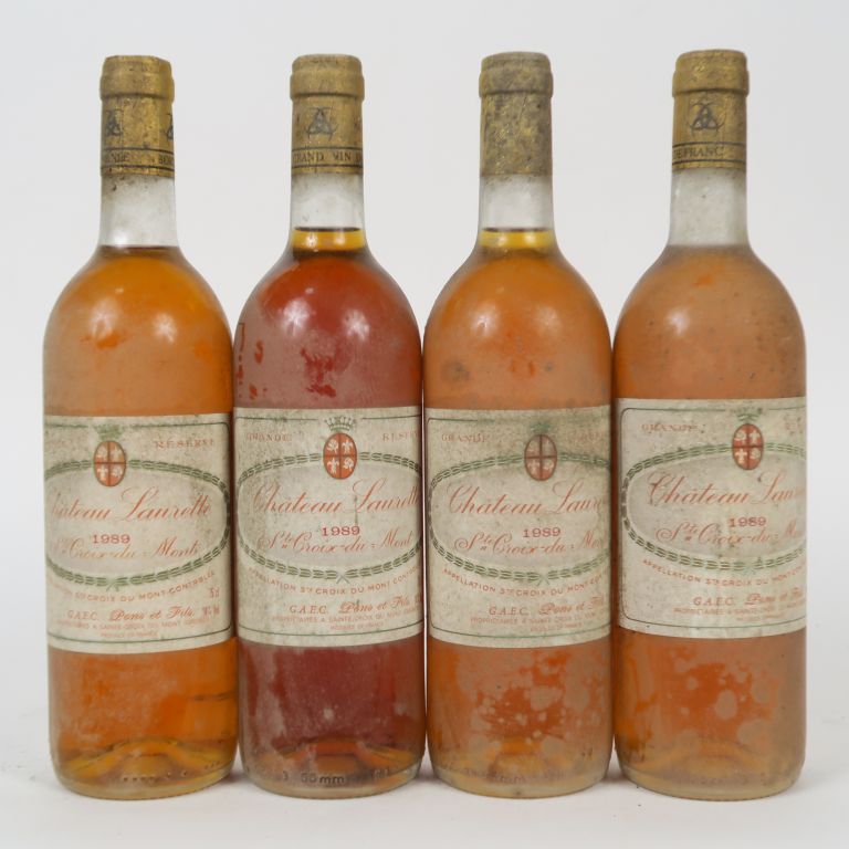 Lot de 4 BOUTEILLES CHÂTEAU LAURETTE STE CROIX DU MONT - 1989 - 1 BG au prix de 20 à 30 € en vente aux enchères par l'hôtel des ventes Primardeco