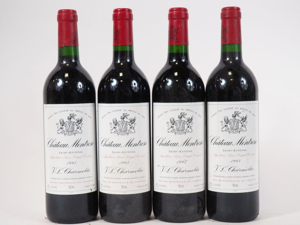 Lot de 4 BOUTEILLES CHÂTEAU MONTROSE GCC ST ESTÈPHE - 1993 au prix de 220 à 250 € en vente aux enchères par l'hôtel des ventes Primardeco