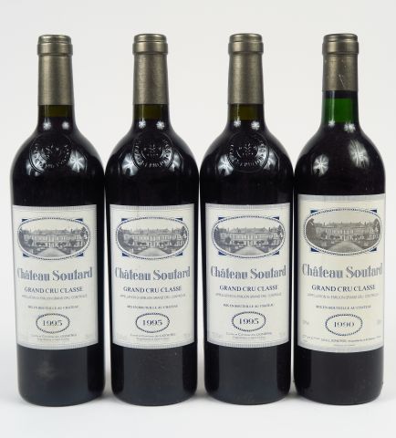 Lot de 4 BOUTEILLES CHÂTEAU SOUTARD GCC ST EMILION : 3 de 1995 - 1 de 1990 BG au prix de 130 à 150 € en vente aux enchères par l'hôtel des ventes Primardeco