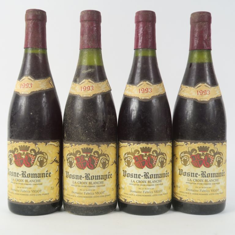 Lot de 4 BOUTEILLES VOSNE ROMANÉE 'LA CROIX BLANCHE' DOMAINE FABRICE VIGOT - au prix de 30 à 40 € en vente aux enchères par l'hôtel des ventes Primardeco