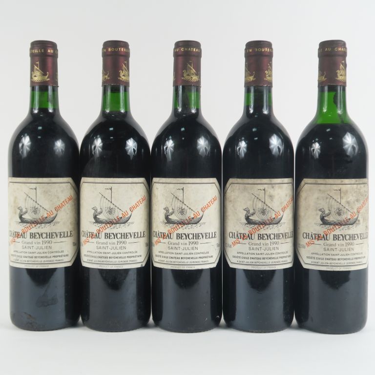 Lot de 5 BOUTEILLES CHÂTEAU BEYCHEVELLE GCC ST JULIEN - 1990 - 5 BG/1 HEP au prix de 220 à 250 € en vente aux enchères par l'hôtel des ventes Primardeco