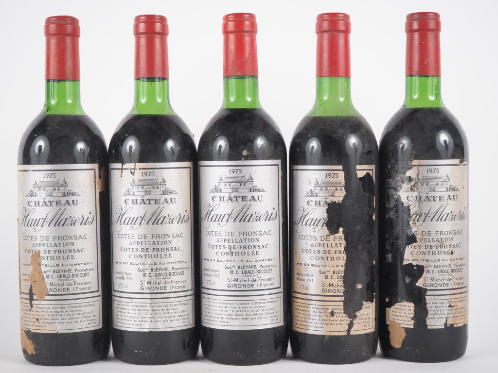 5 BOUTEILLES CHÂTEAU HAUT MAZERIS CÔTES DE FRONSAC - 1975 - 4 LB/1 HEP/3 EA
