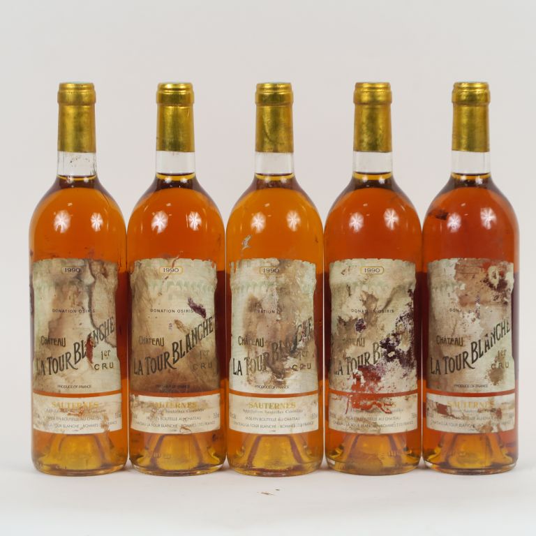 Lot de 5 BOUTEILLES CHÂTEAU LA TOUR BLANCHE 1er CC SAUTERNES - 1990 - EA au prix de 130 à 150 € en vente aux enchères par l'hôtel des ventes Primardeco