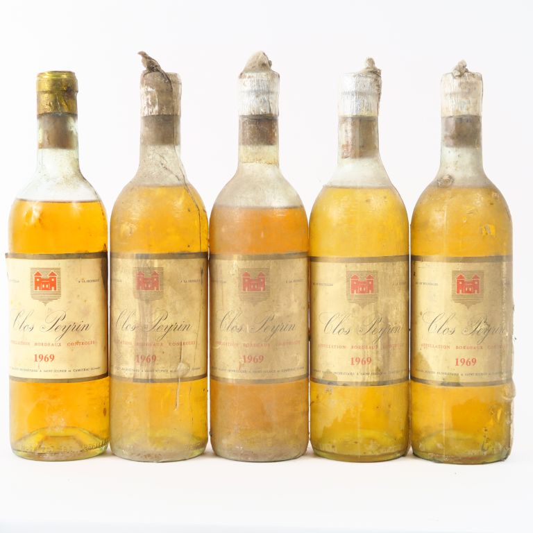 Lot de 5 BOUTEILLES CLOS PEYRIN BORDEAUX - 1969 - 3 MEP/2 BEP au prix de 10 à 20 € en vente aux enchères par l'hôtel des ventes Primardeco
