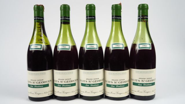 5 BOUTEILLES NUITS ST GEORGES 1er CRU 'LES PRULIERS' H. GOUGES - 1966 - 3 à 7 cm/2 à 8 cm