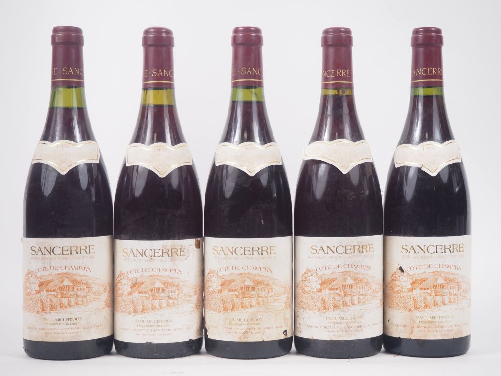 Lot de 5 BOUTEILLES SANCERRE ROUGE - 1997 - ET au prix de 20 à 30 € en vente aux enchères par l'hôtel des ventes Primardeco