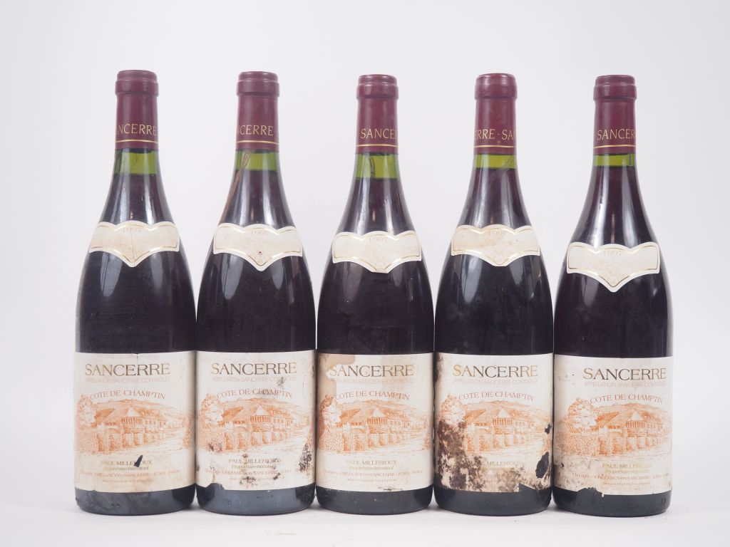 Lot de 5 BOUTEILLES SANCERRE ROUGE - 1997 - ET au prix de 20 à 30 € en vente aux enchères par l'hôtel des ventes Primardeco