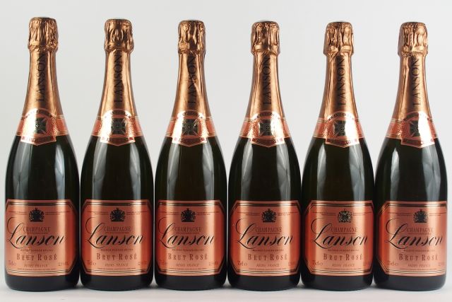 Lot de 6 BOUTEILLES CHAMPAGNE LANSON BRUT ROSE au prix de 80 à 100 € en vente aux enchères par l'hôtel des ventes Primardeco