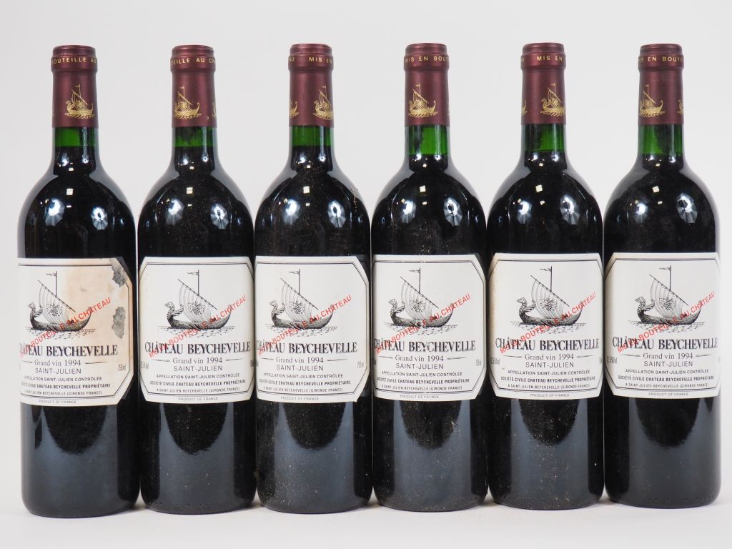 Lot de 6 BOUTEILLES CHÂTEAU BEYCHEVELLE GCC ST JULIEN - 1994 - 1 ELA au prix de 180 à 200 € en vente aux enchères par l'hôtel des ventes Primardeco