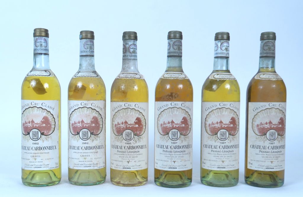 6 BOUTEILLES CHÂTEAU CARBONNIEUX GCC GRAVES : 2 DE 1982 BG/HEP - 3 DE 1987 1 BG - 1 DE 1988 LB /ELS