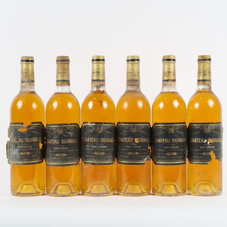 6 BOUTEILLES CHÂTEAU GUIRAUD 1er CC SAUTERNES - 1985 - 4 BG/ LB/EA