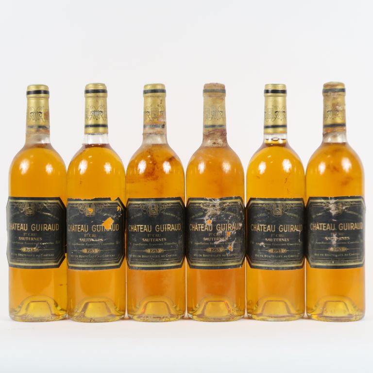 6 BOUTEILLES CHÂTEAU GUIRAUD 1er CC SAUTERNES - 1985 - 5 BG/1 LB/ETLA