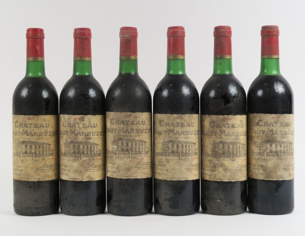 Lot de 6 BOUTEILLES CHÂTEAU HAUT MARBUZET ST ESTEPHE - 1981 - BG/ES au prix de 80 à 90 € en vente aux enchères par l'hôtel des ventes Primardeco