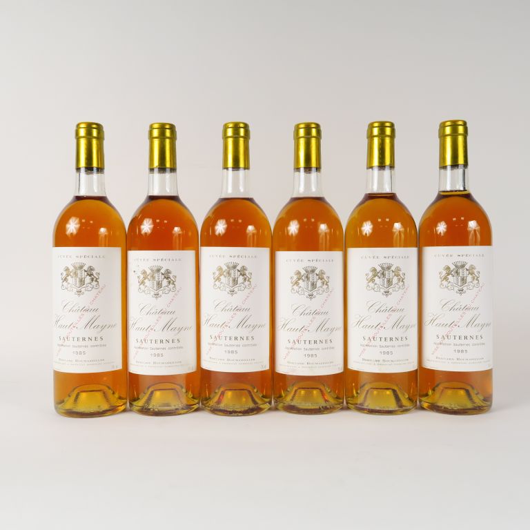 Lot de 6 BOUTEILLES CHÂTEAU HAUT MAYNE 'CUVÉE SPÉCIALE' SAUTERNES - 1985 - BG au prix de 100 à 120 € en vente aux enchères par l'hôtel des ventes Primardeco