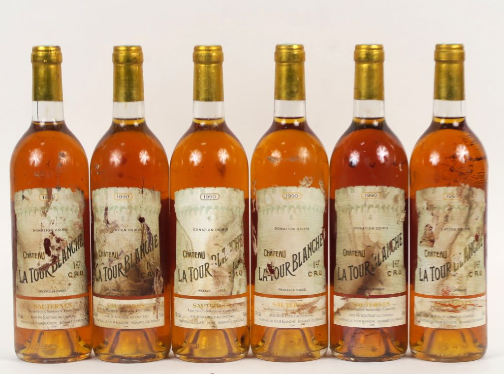 Lot de 6 BOUTEILLES CHÂTEAU LA TOUR BLANCHE 1er CC SAUTERNES - 1990 - EA au prix de 150 à 180 € en vente aux enchères par l'hôtel des ventes Primardeco