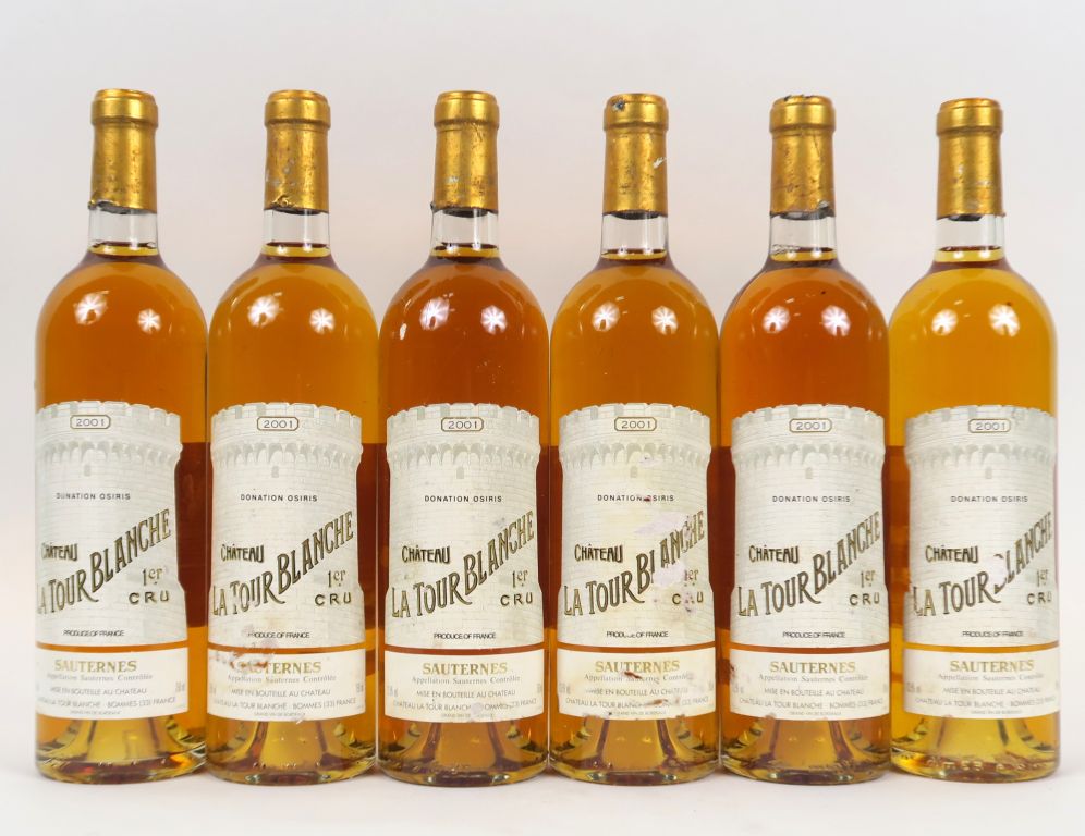 Lot de 6 BOUTEILLES CHÂTEAU LA TOUR BLANCHE 1er CC SAUTERNES - 2001 - 2 ETLA au prix de 180 à 200 € en vente aux enchères par l'hôtel des ventes Primardeco