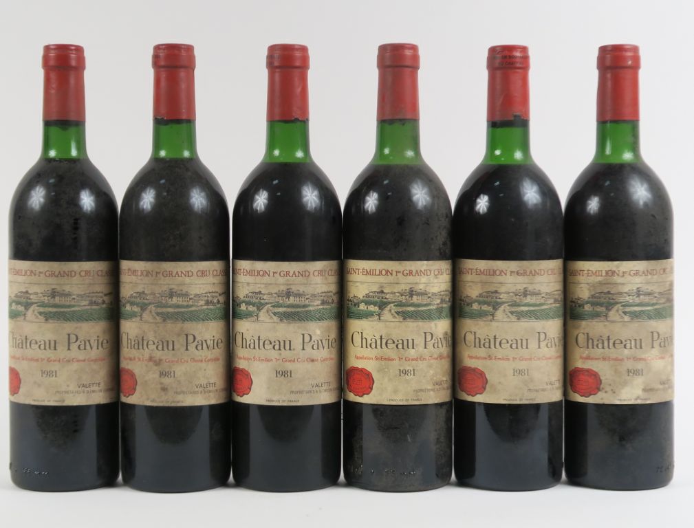 Lot de 6 BOUTEILLES CHÂTEAU PAVIE 1er GCC ST EMILION - 1981 - LB/ET au prix de 440 à 480 € en vente aux enchères par l'hôtel des ventes Primardeco
