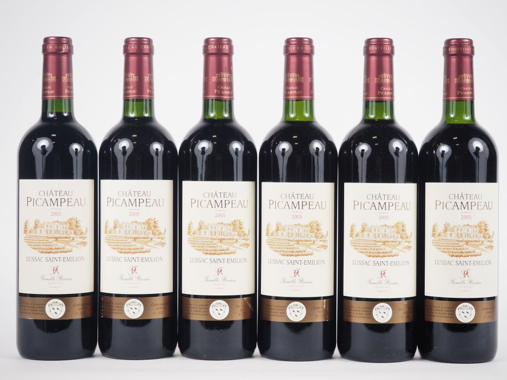 Lot de 6 BOUTEILLES CHÂTEAU PICAMPEAU LUSSAC ST ÉMILION - 2005 - 5 BG/1 LB au prix de 35 à 45 € en vente aux enchères par l'hôtel des ventes Primardeco