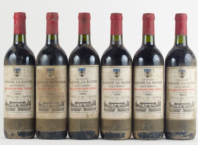 Lot de 6 BOUTEILLES CHÂTEAU RAMAGE LA BATISSE HAUT MEDOC - 1985 - BS/BG+ au prix de 60 à 80 € en vente aux enchères par l'hôtel des ventes Primardeco