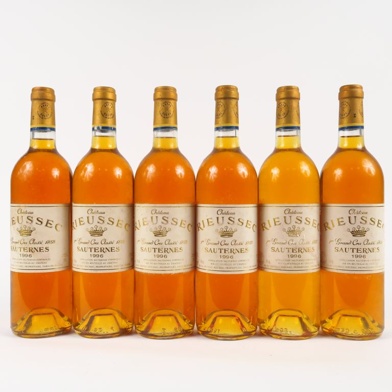 Lot de 6 BOUTEILLES CHÂTEAU RIEUSSEC 1er CC SAUTERNES - 1996 au prix de 90 à 110 € en vente aux enchères par l'hôtel des ventes Primardeco