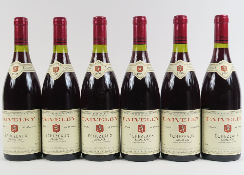 Lot de 6 BOUTEILLES ECHEZEAUX GC FAIVELEY - 1990 - CBO - PAPIERS DE SOIE au prix de 650 à 750 € en vente aux enchères par l'hôtel des ventes Primardeco