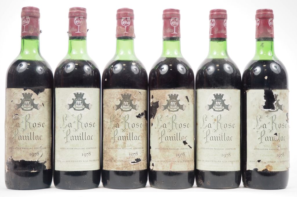 Lot de 6 BOUTEILLES LA ROSE PAUILLAC - 1978 - HEP/ETA au prix de 20 à 30 € en vente aux enchères par l'hôtel des ventes Primardeco