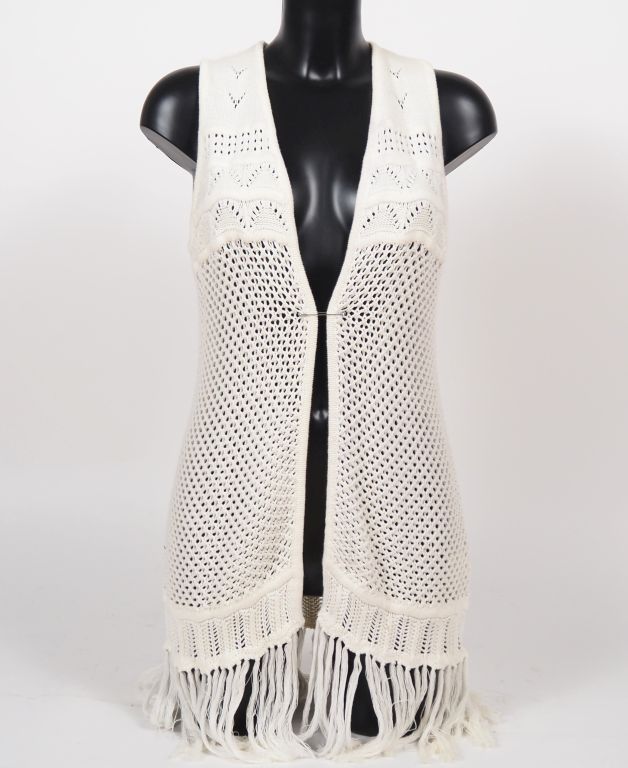 ALLUDE Pull sans manche en coton tricoté à franges. Taille présumée. 40