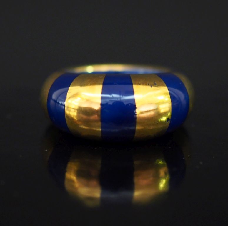 BERNARDAUD, Limoges Bague dôme en porcelaine bleu nuit rehaussée d'or. Signée. Dans son pochon et sa boite. TDD : 54