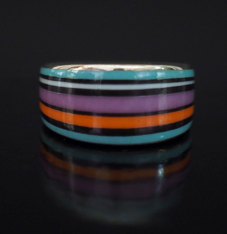 BERNARDAUD, Limoges Bague dôme en porcelaine polychrome rehaussé d'or, à décor de quadrillage. Signée. Dans sa boite. TDD : 54