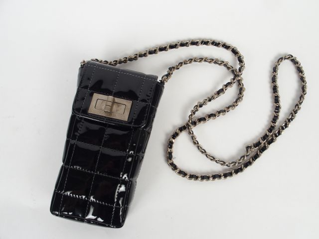 Lot de CHANEL. Petit sac en agneau vernis matelassé au prix de 150 à 250 € en vente aux enchères par l'hôtel des ventes Primardeco